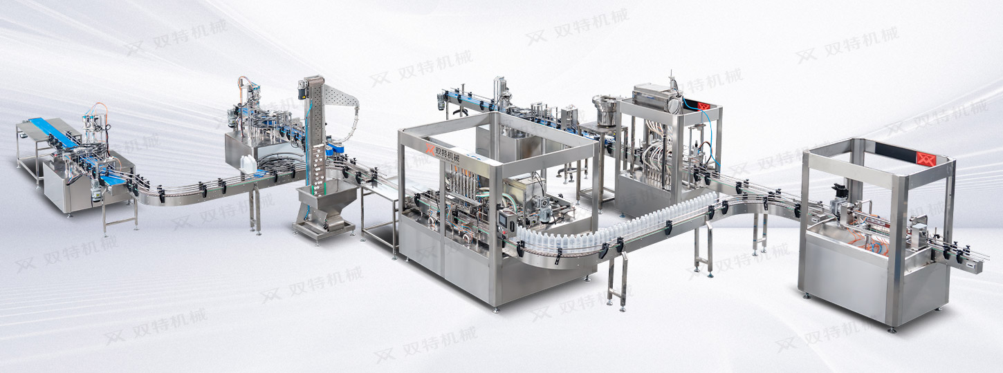 雙特機(jī)械專注于洗瓶--烘干滅菌--灌裝--真空旋蓋--巴氏殺菌--貼標(biāo)--套膜--裝箱--碼垛全系列的成套灌裝生產(chǎn)線。