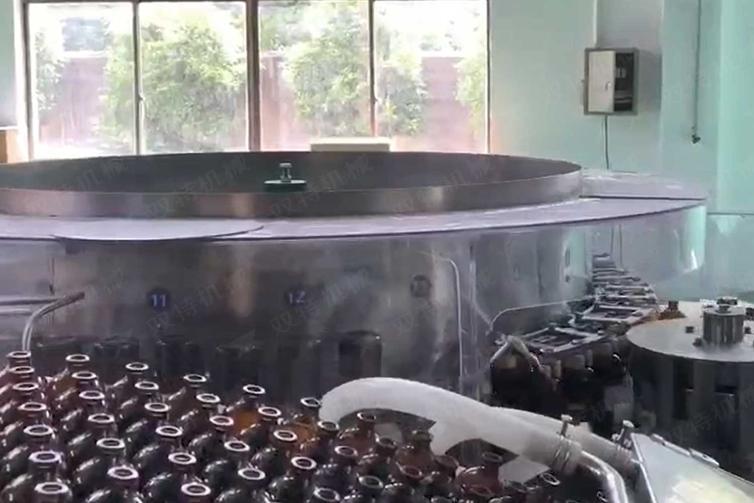 洗瓶機(jī)的過程是空瓶進(jìn)入輸瓶螺桿,由星輪傳動到夾瓶工位,洗瓶的整個過程瓶底均懸空,其優(yōu)點(diǎn)是著力點(diǎn)在瓶頭和頸部,是瓶子厚硬的部分,在清洗過程中不會損傷或壓扁,洗瓶機(jī)可調(diào)整多種瓶子,且調(diào)整簡便。